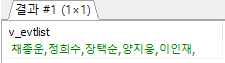 DECLARE v_evtlist varchar(255) DEFAULT ""; # 읽어온 로우를 하나로 연결하여 담을 변수 선언