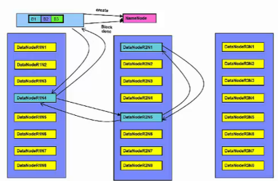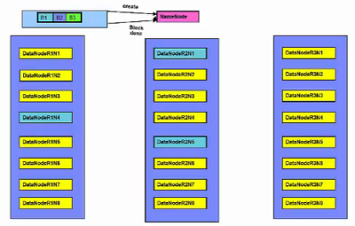 노드(node)는 하나의 컴퓨터를 말합니다. 이처럼 30~40개의 노드가 모여 하나의 rack을 구성합니다. rack은 물리적으로 같은 network의 switch에 모두 연결이 되어 있습니다. 그렇기 때문에 두 노드의 badnwidth는 다른 rack에 있는 노드보다 크게 됩니다. 즉, 데이터의 이동을 할 수 있는 폭이 크기 때문에 데이터의 속도가 빠른것을 알 수 있습니다. rack이 모여서 하나의 Hadoop Cluster를 구축하게 됩니다. 이처럼 network의 다른 switch에 연결되어 있는 rack으로 인해 어떤 성능 저하가 나타는지 추후에 알아보도록 하겠습니다.