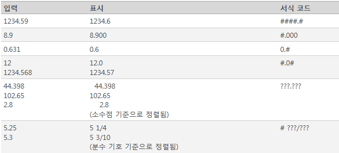엑셀에서 사용자 지정에서 사용하는 서식 코드는