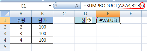 단가(B2:B4)의 같은 요소를 각각 곱하여 합계를 낸 값이 됩니다.