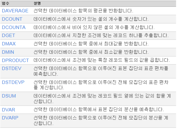 엑셀 데이터베이스 함수 알아보기