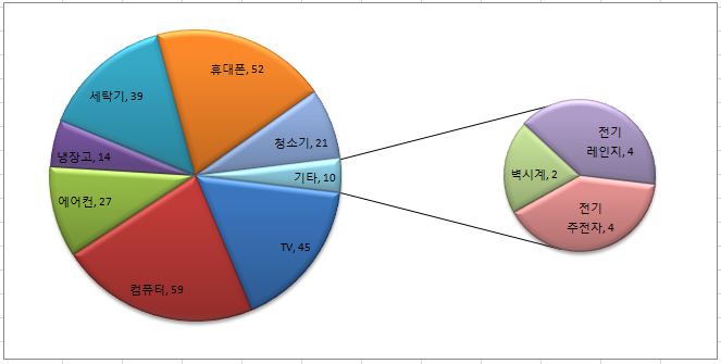 않아 알아보기가 어렵습니다. 이런경우에 비율이 작은 몇개의 데이터 계열을 함께 '기타'로 표시하여