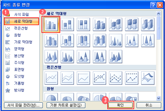 '차트 종류 변경' 대화상자에서 [세로막대형]에서 적당한 세로막대형을 클릭하여 선택합니다.