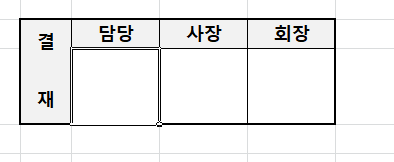 붙여넣기를 한 후 인쇄물이 어떻게 나오는지 인쇄 미리보기를 해봤는데 깔끔하게 결재란이 적용 됐습니다. 그렇다면 연결된 그림으로 붙여넣기를 한 상태에서 원 데이터를 수정해서 변화하는 값을 살펴볼까요? 담당, 사장, 회장 결재란으로 원데이터 값을 수정해보겠습니다.