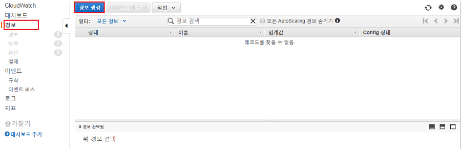 경보 목록을 보시면 지금은 데이터가 부족하여 "부족" 상태에 있지만 5분이 지나면 "확인"상태로 바뀝니다.