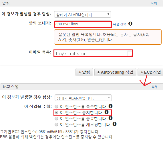 알림을 받은 후 EC2 작업을 설정할 수도 있습니다.