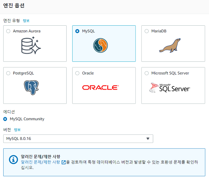 이제 MySQL 엔진을 사용하여 RDS 인스턴스를 생성해보겠습니다.
