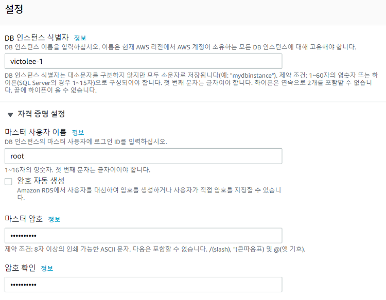 - DB 인스턴스 식별자