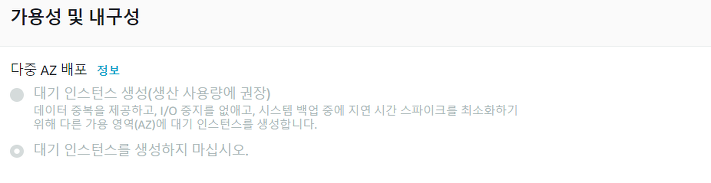 다중 AZ 배포를 사용해 DB 인스턴스에 고가용성과 장애 조치 기능을 지원합니다.