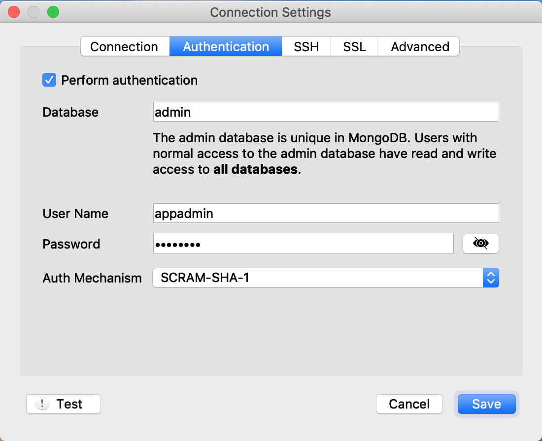 2) Connection/Authentication 상세 정보는 git repository 소스코드에 설정 값을 참고