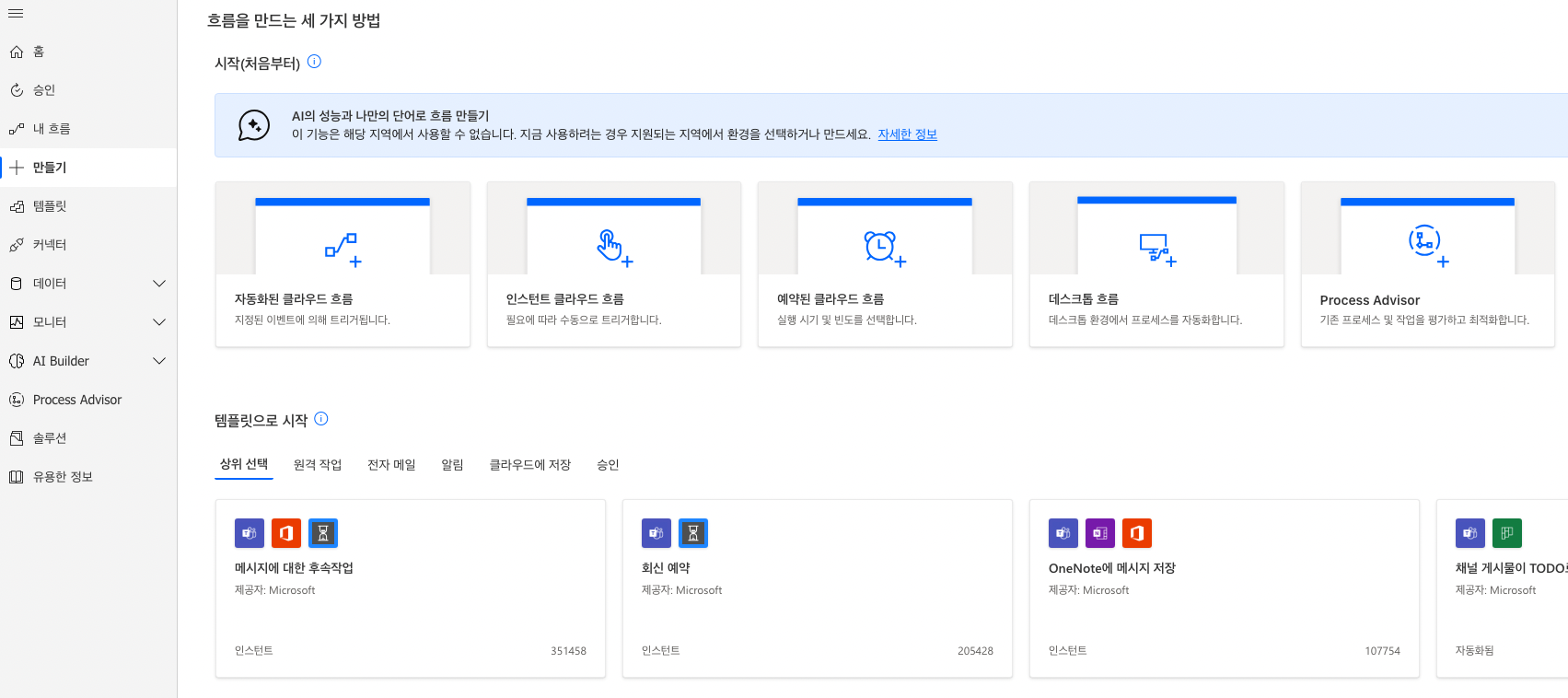 앱 > 모든 앱 > Power Automate 를 찾습니다.