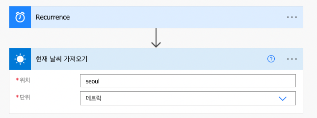 새 단계를 클릭하여 현재 날씨 가져오기를 선택합니다.